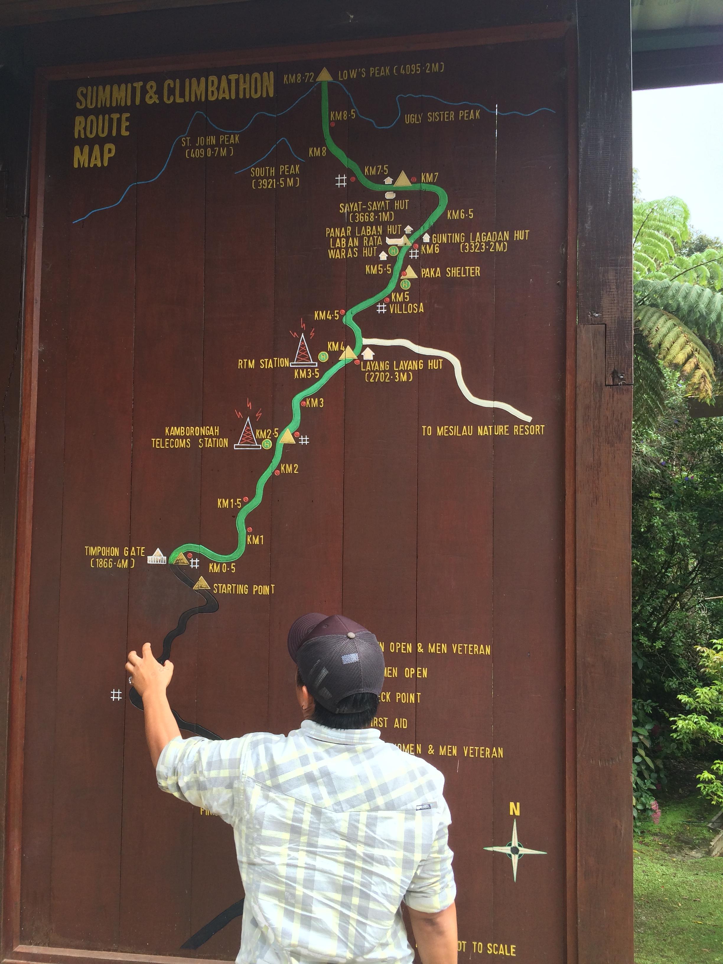 현지 가이드가 우리의 등산코스를 안내하는 중이다.