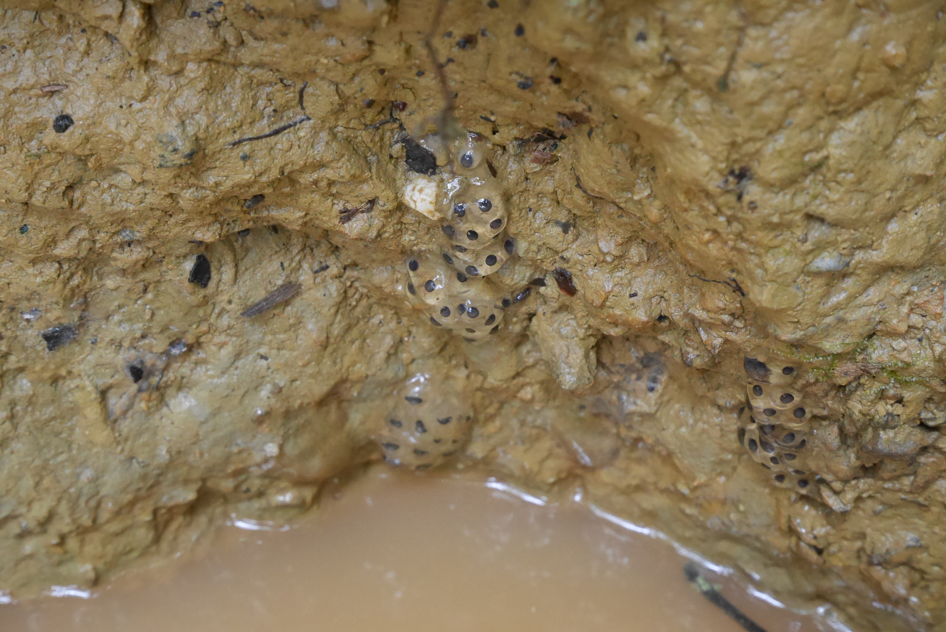 등산로에 물이 고여있었는데 개구리 알이 보인다.