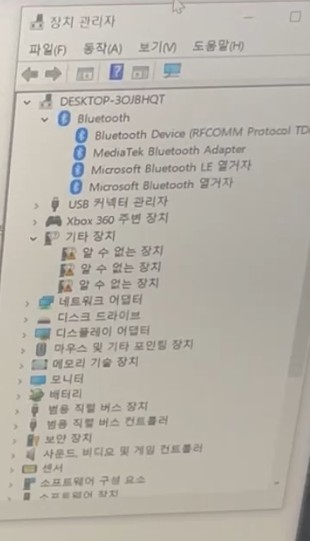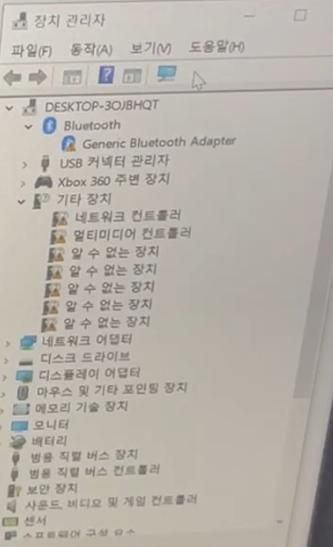 윈도우 설치가 완료되면 이렇게 잡히지 않은 드라이버 들이 많다.