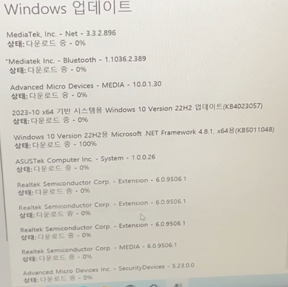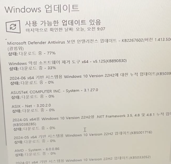 잠시후 끝도 없이 업데이트 파일들이 검색된다.