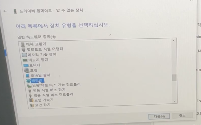 알 수 없는 장치를 더블 클릭하고 컴퓨터의 사용 가능한 드라이버 목록에서 직접 선택 클릭