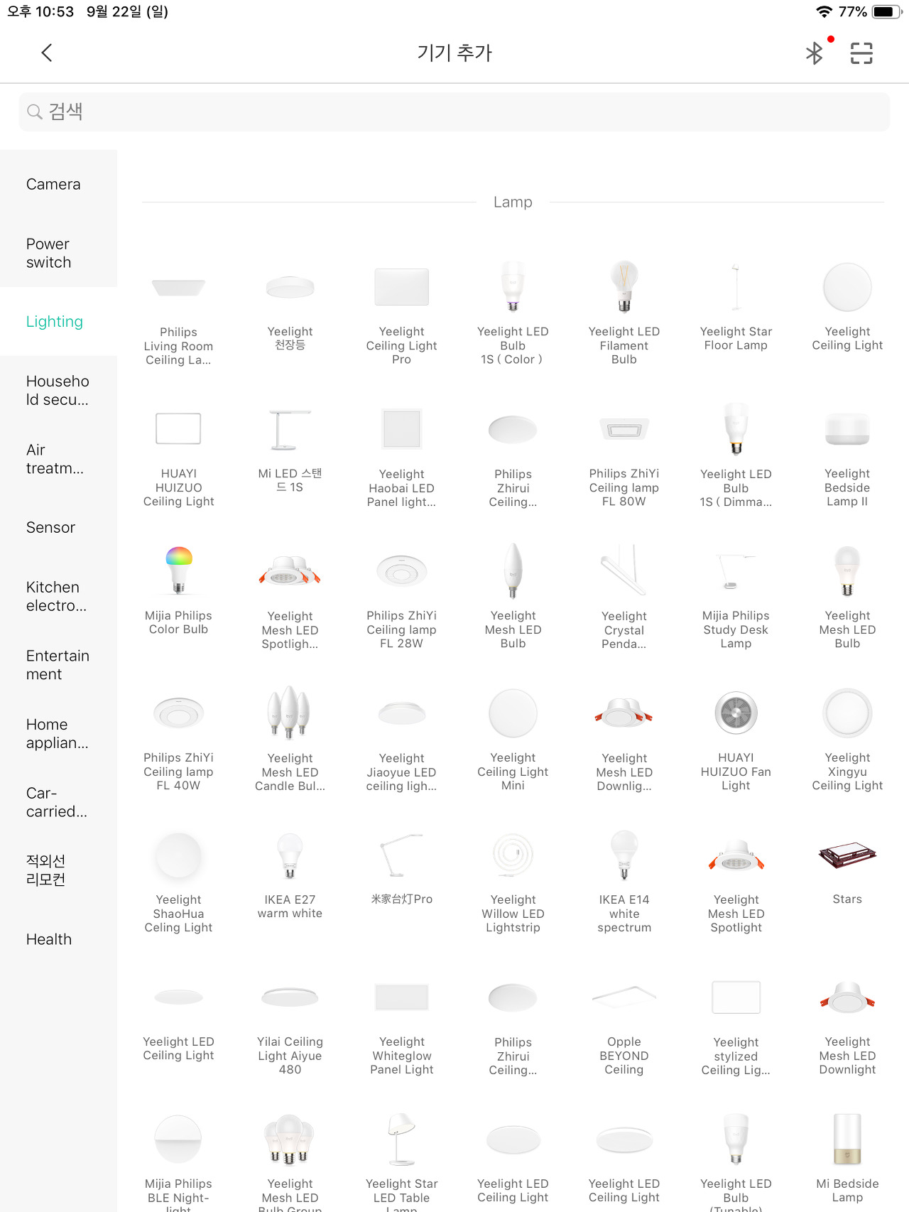 등을 사용 안 하는 집은 없을 테니 사용량이 가장 많은 제품이다 보니 제품 수도 가장 다양하다. 세계적인 가구 IKEA 이케아 제품도 샤오미 미홈에서 조종 가능하고 필립스는 오래전부터 지원해 왔다.