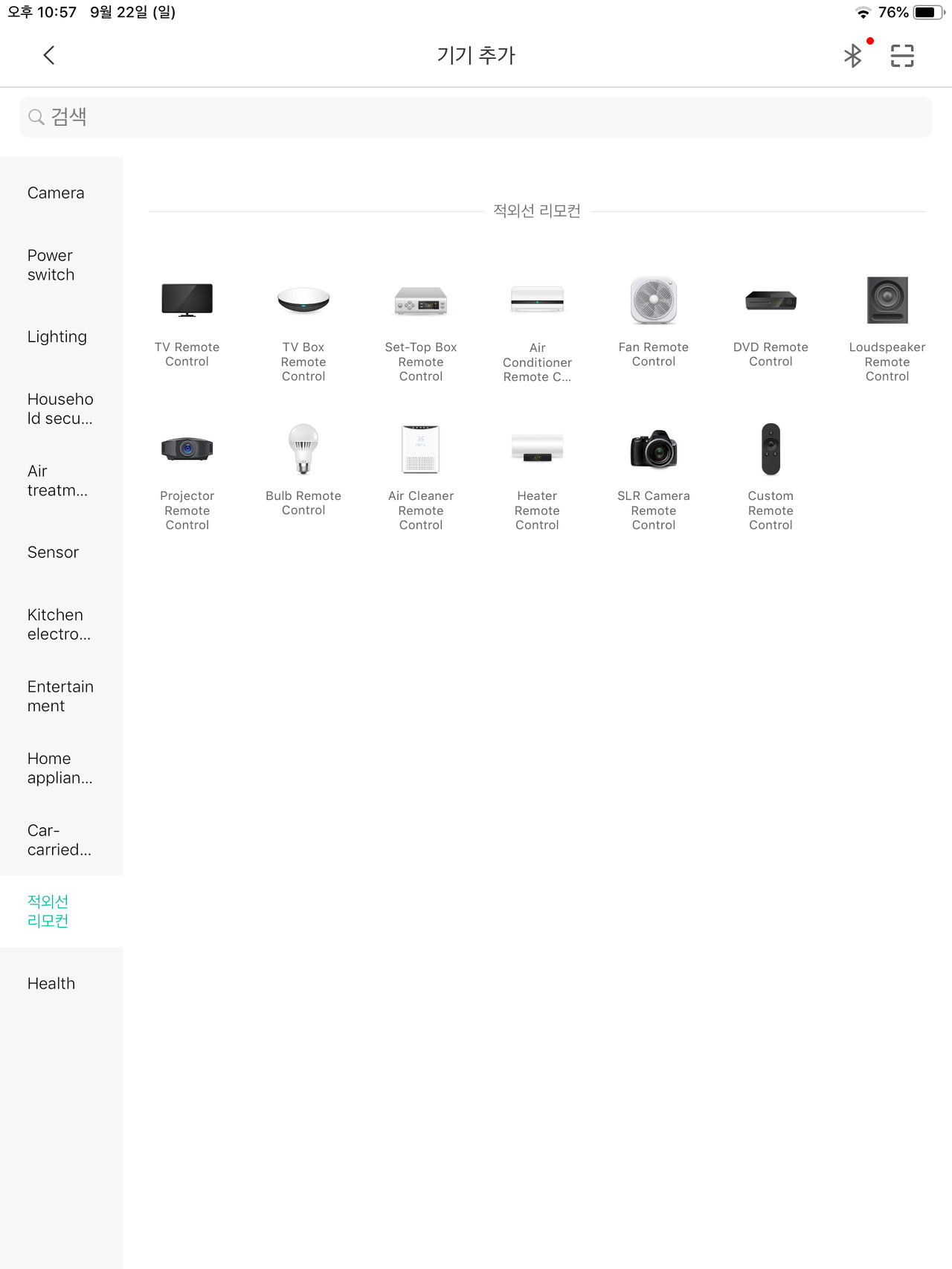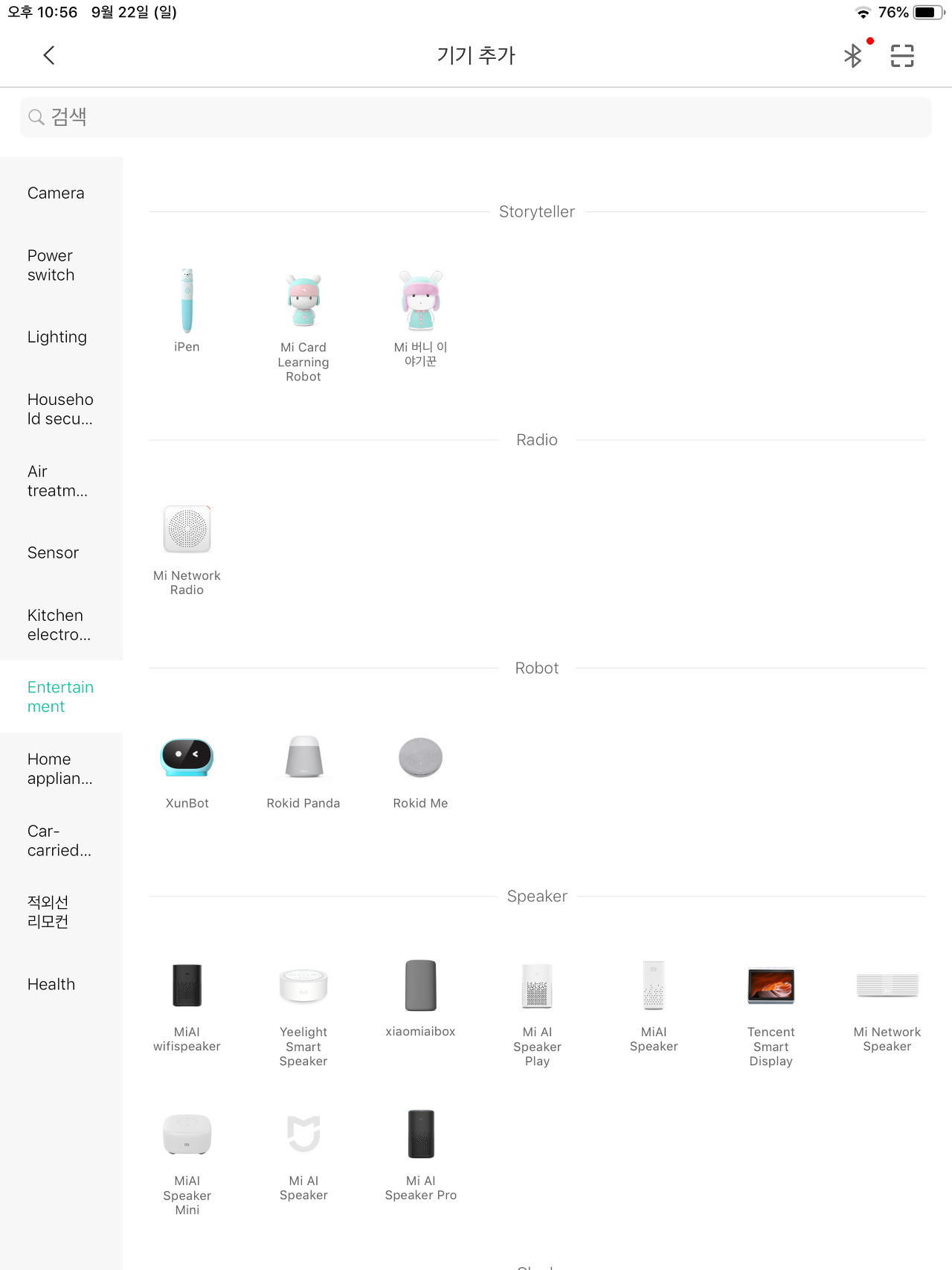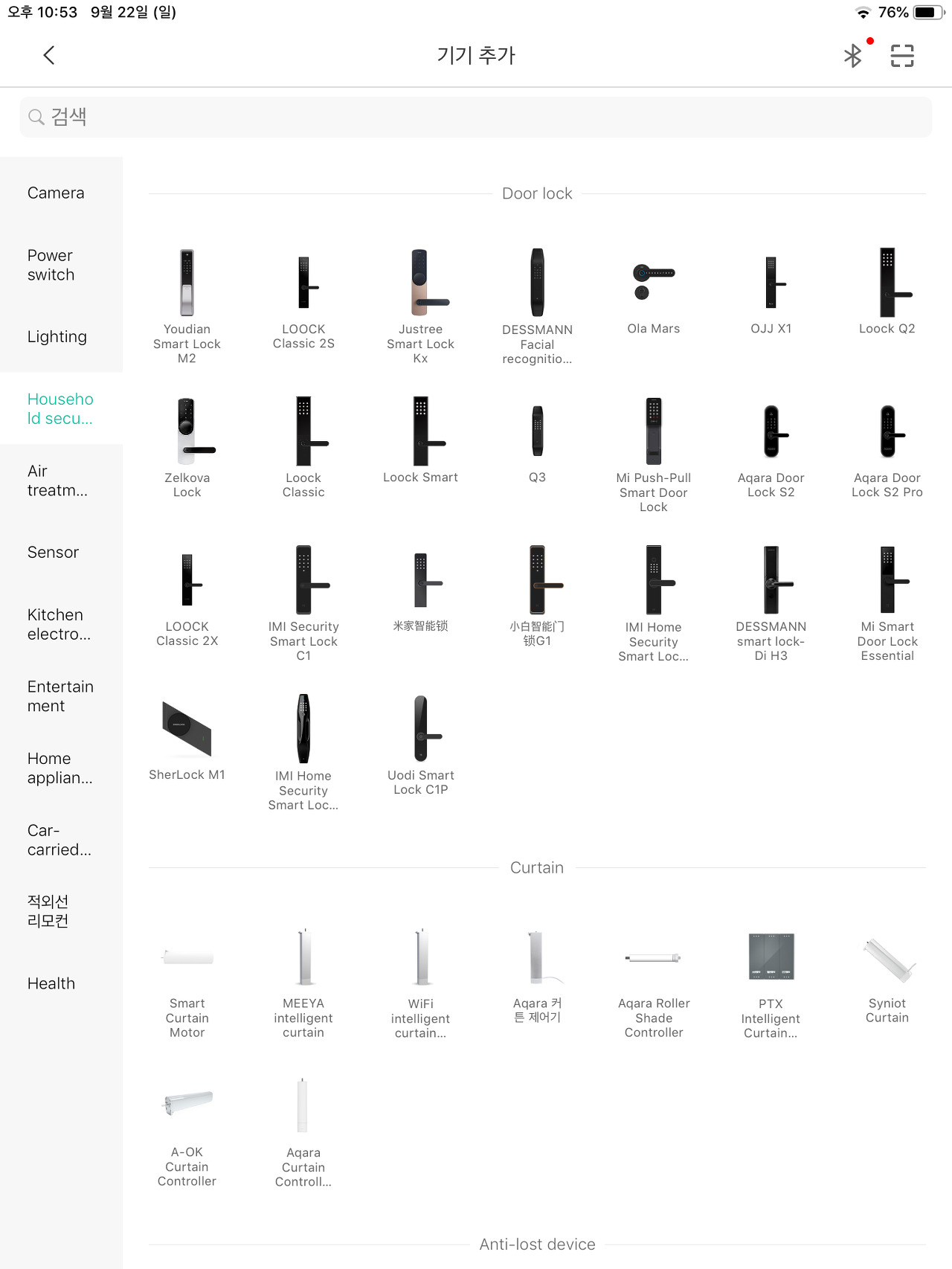 그리고 상단에 기기 추가 버튼은 + 마크를 클릭하면 등록 가능한 모든 기기를 볼 수 있는데 제품명이 한글인 제품도 있고 뭐가 다른지 모르지만 완전히 동일하게 생긴 제품들도 보인다.