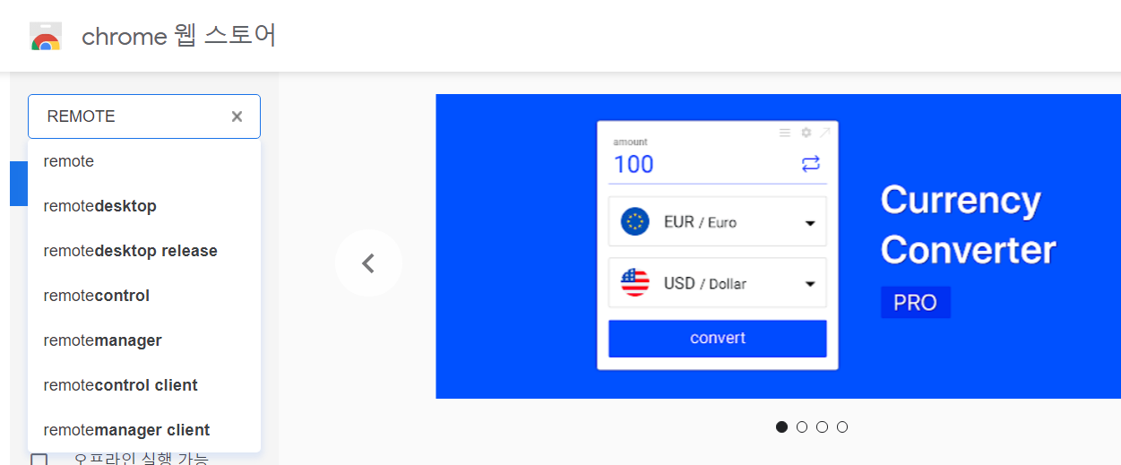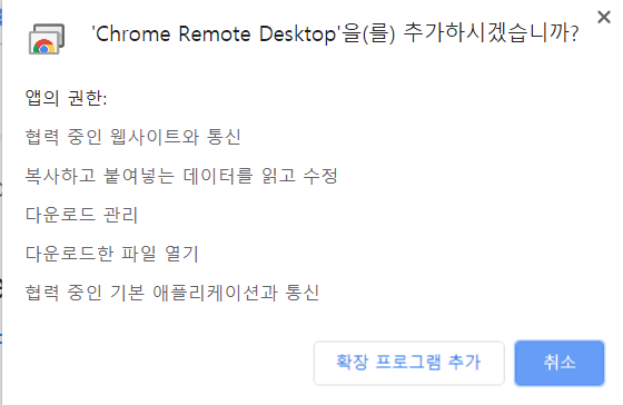 위 그림의 크롬 리모토 데스트캅을 설치 한다. 옆에 "Chrome에 추가" 버튼을 누르면 된다.