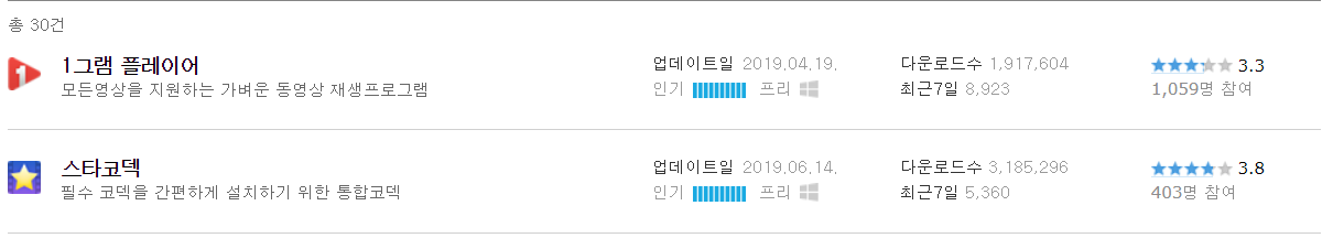 1그램 플레이어 - 예전 KMPlayer 나 팟플레이어 처럼 가벼움으로 승부하는 플레이어, 코덱 성능 좋고 구형 PC라면 추천.