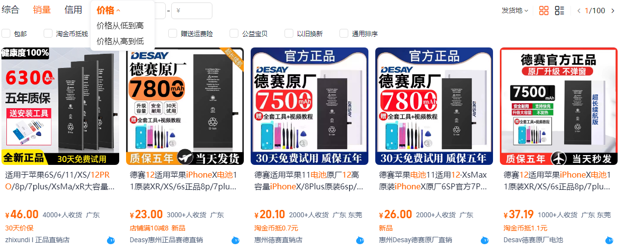 타오바오에 아이폰 배터리를 검색해보니 몇 몇 회사가 나왔는데 보조배터리 만드는 회사에서 나온 배터리는 그나마 조금 신뢰가 가는데 DESAY 배터리는 도저히 신뢰가 안간다.