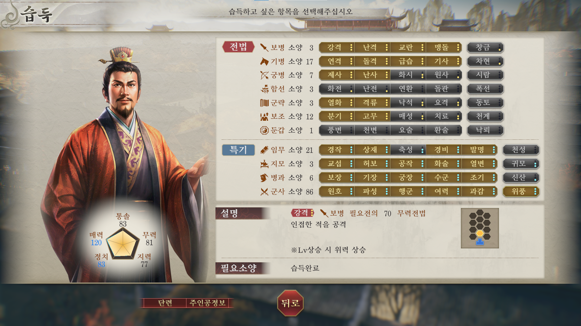 즉 그 부대는 지력 65에 무력 100인 부대가 된다.