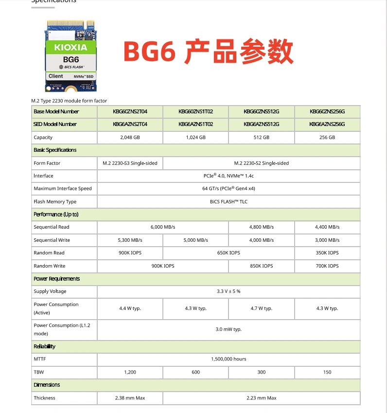 BG6 는 가장 신형으로 용량에 따라 읽기 속도 4400 4800 6000 메가의 차이가 있고 쓰기 속도는 3000 4000 5300 메가로 차이가 2배 가까이 난다.