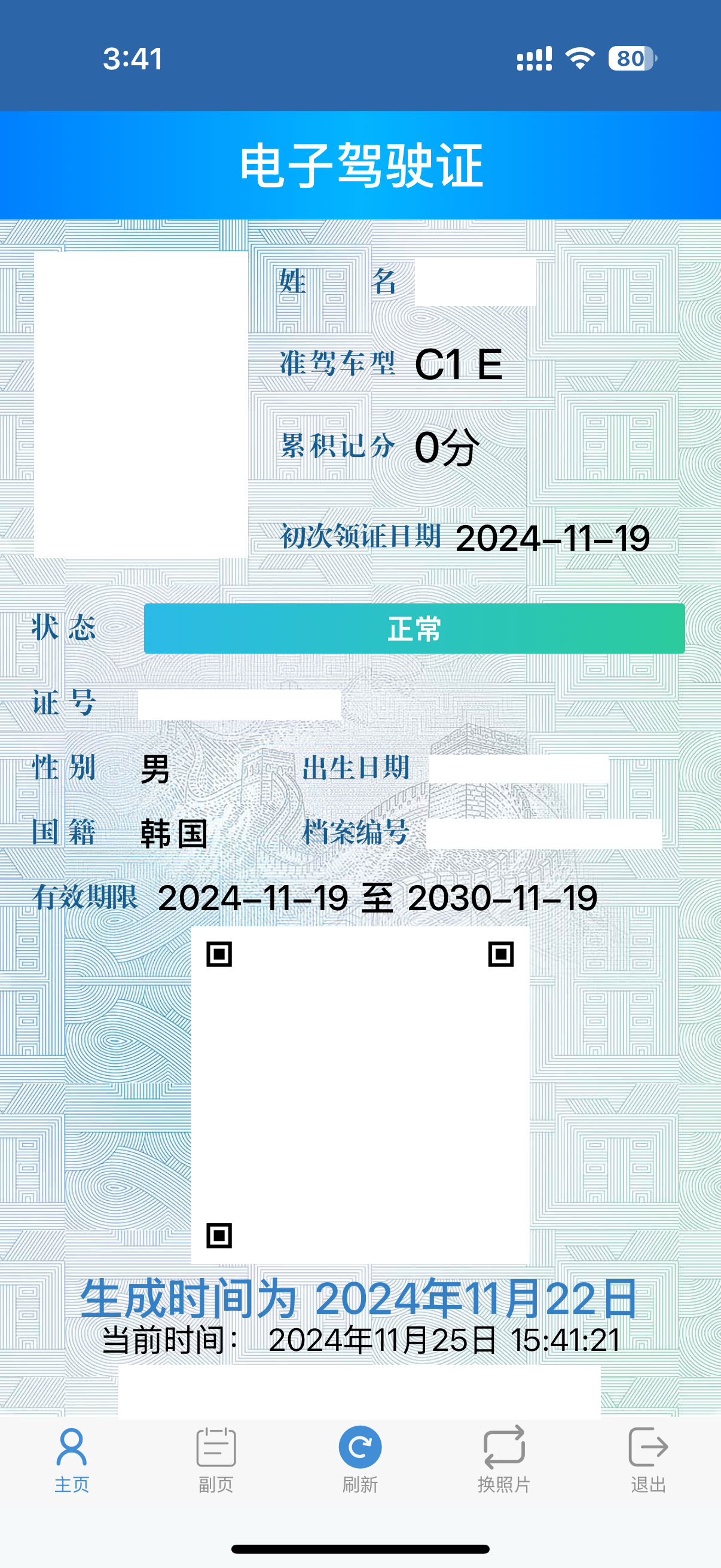 전용앱을 통해 사용가능한 중국의 전자면허증입니다.