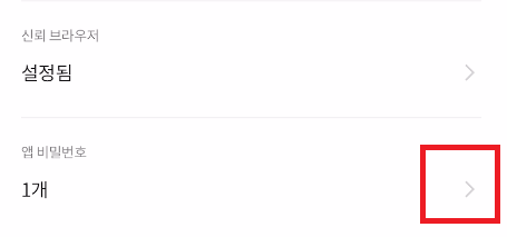 앱 비밀번호 1개 옆의 > 화상표 터치