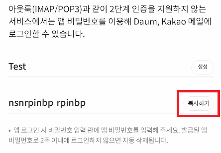 생성된 비밀번호 옆에 복사하기 터치해서 복사한 비밀번호를 로그인에 사용하면 됨.