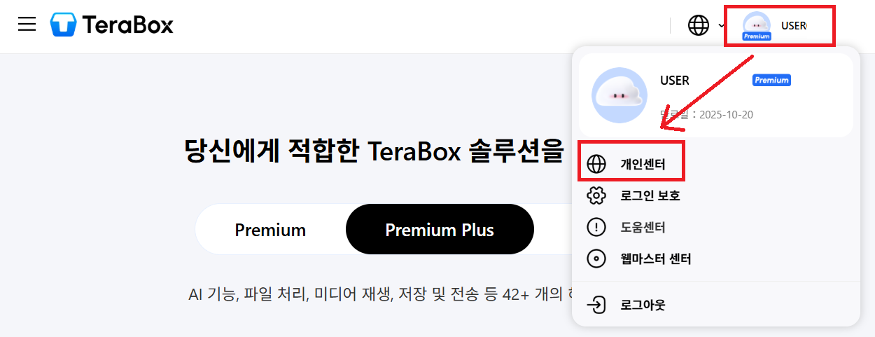 개인센터를 클릭