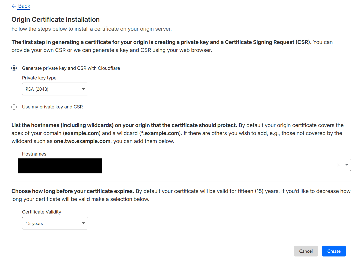 Origin Server 에서 Create Certificates 클릭