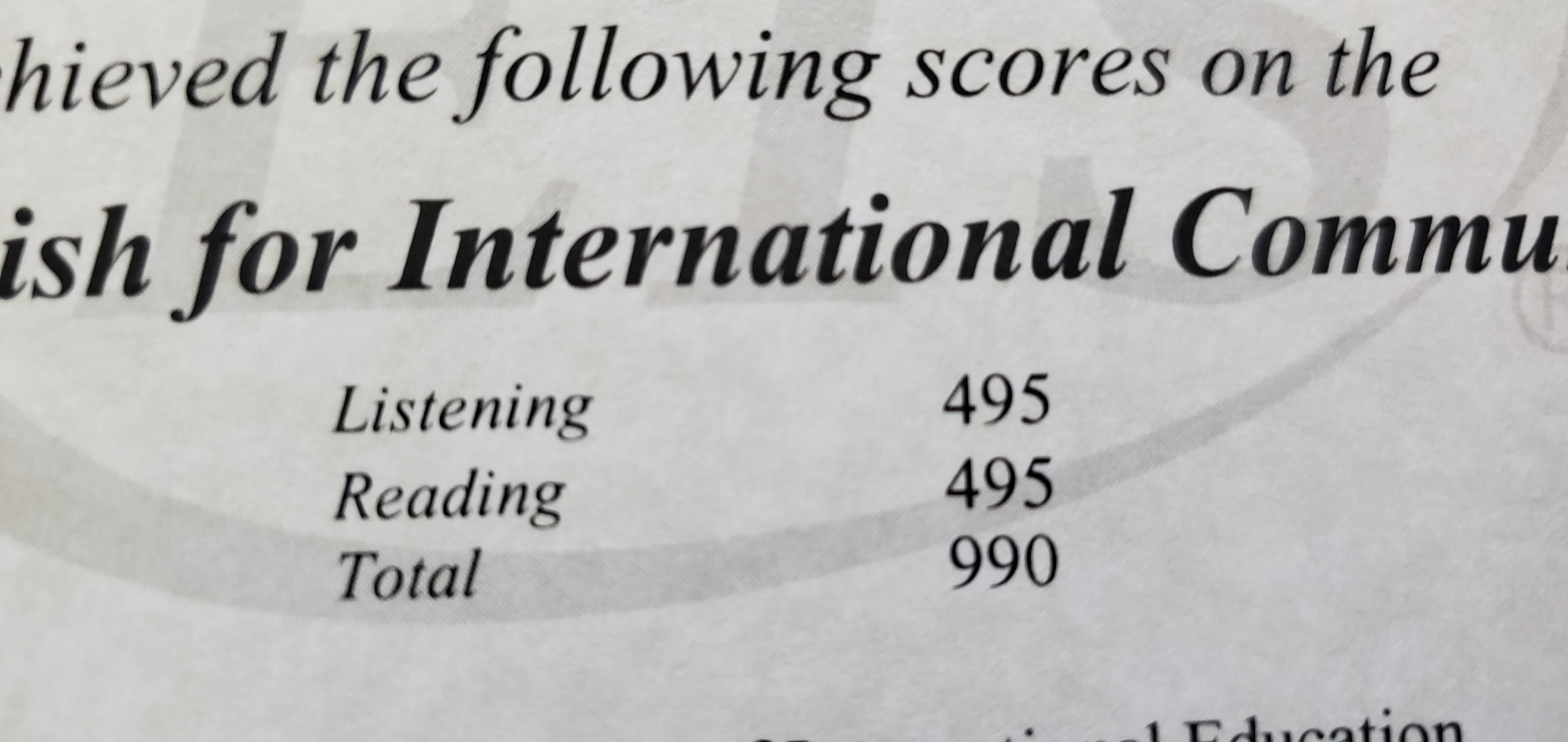 토익이 뭔지도 모르고 있고 영어 시험은 ILETS 아니냐고 따지기에, 닥치고 토익 치라고 짜증 부렸더니 나중에 토익 시험 쳤고 결과 나왔다고 점수표 툭 던지는데...