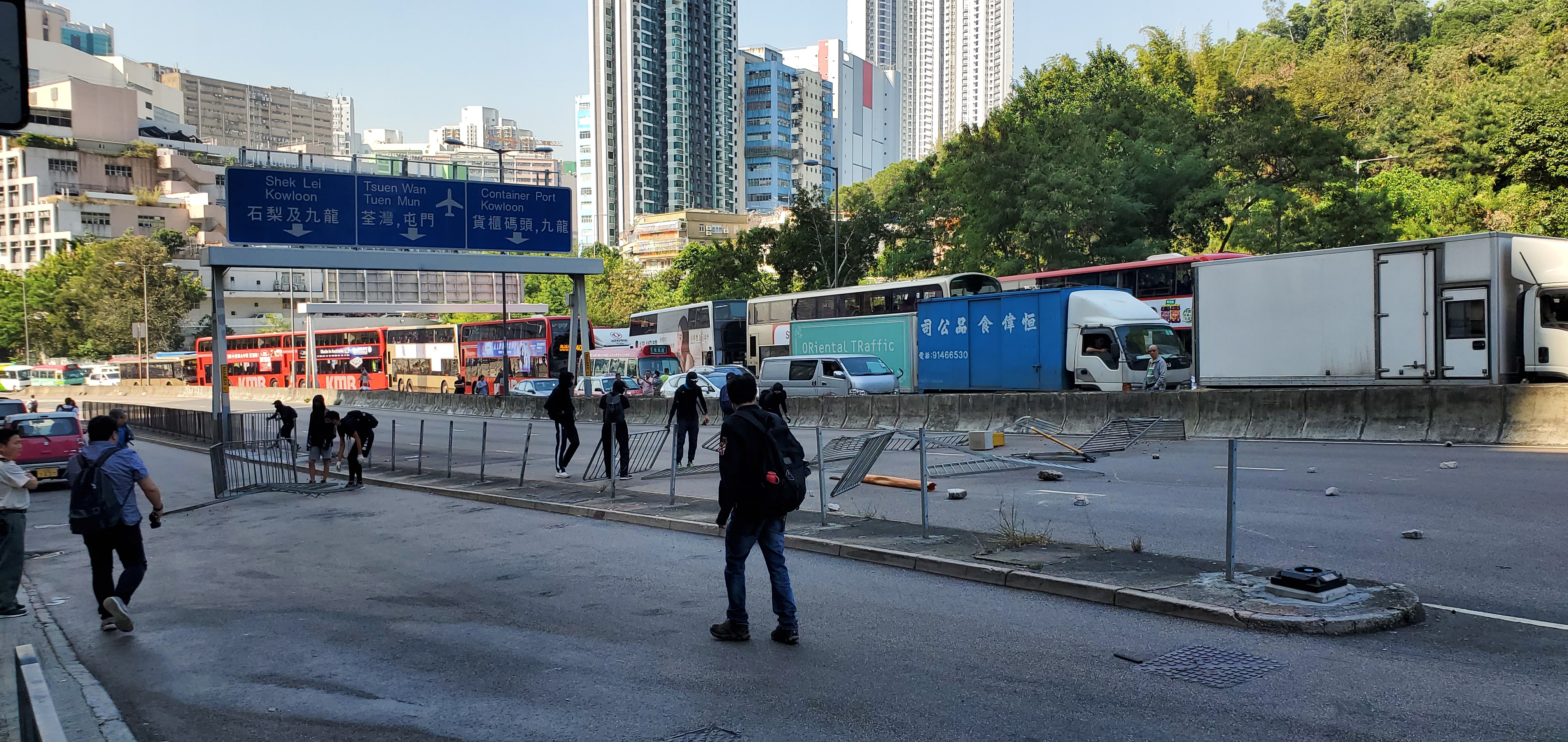 이렇게 여러 교통 요충지를 막아 버리면 홍콩 전역의 도로가 봉쇠된다.