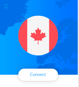 클릭하고 국기를 캐나다로 선택하고 Connect 눌려주면 됩니다. 다른 국기가 보인다면 국기를 클릭하면 국가 리스트가 나옵니다. 국가가 너무 많아 거기서 canada를 찾기 쉽지 않습니다. 검색어에 canada 라고 넣으면 됩니다.