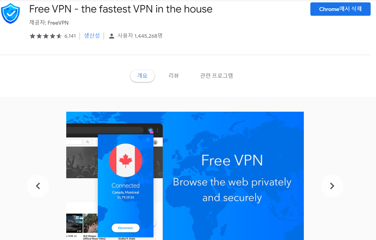 크롬 앱에서 VPN 검색하면 첫번짼가 두번째에 나오는 앱 입니다.