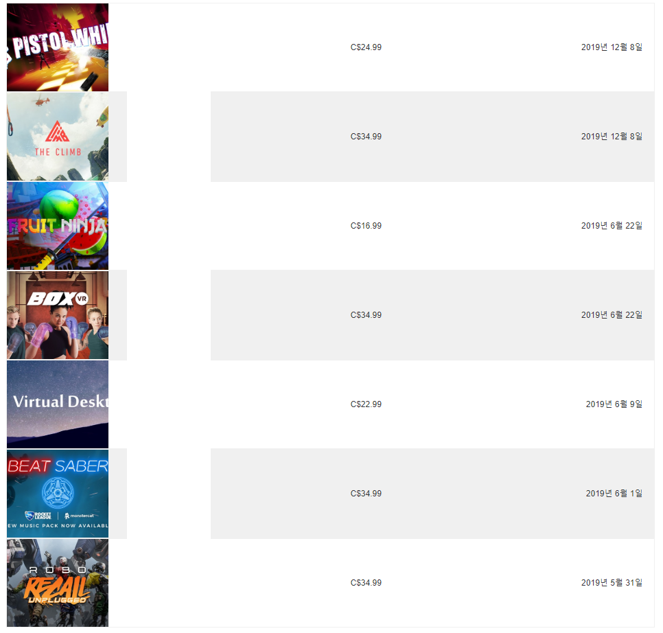 오큘러스 퀘스트 기기만 구매했다고 다가 아니다 본격적인 지출은 이제부터다. 스팀의 경우 국가마다 가격 정책이 다르고 아르헨티나가 가장 저렴하다. 보통 한국의 1/2 가격이고 저렴한 것은 1/5 이하도 있다. 거기다 세일까지 해버리면 말도 안되게 저렴하다.