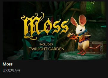 Moss - 퍼즐 게임이다. 약간의 액션도 있는 것 같은데 아직 플레이를 많이 해보지 않아 잘 모르겠다. 오큘러스에서 30달러 36000원 정도 하는데 스팀에서 할인해 7000원 1/5 가격이라 그냥 사두었다.