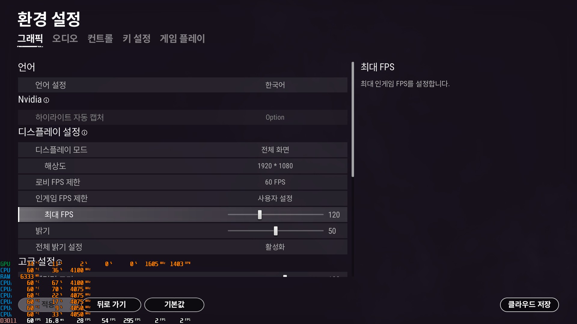 배틀그라운드 환경설정에 들어가면 오른쪽 하단에 클라우드 저장이 있다.