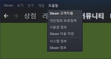 스팀 프로그램에서 > 도움말 > Steam 고객지원 으로 이동