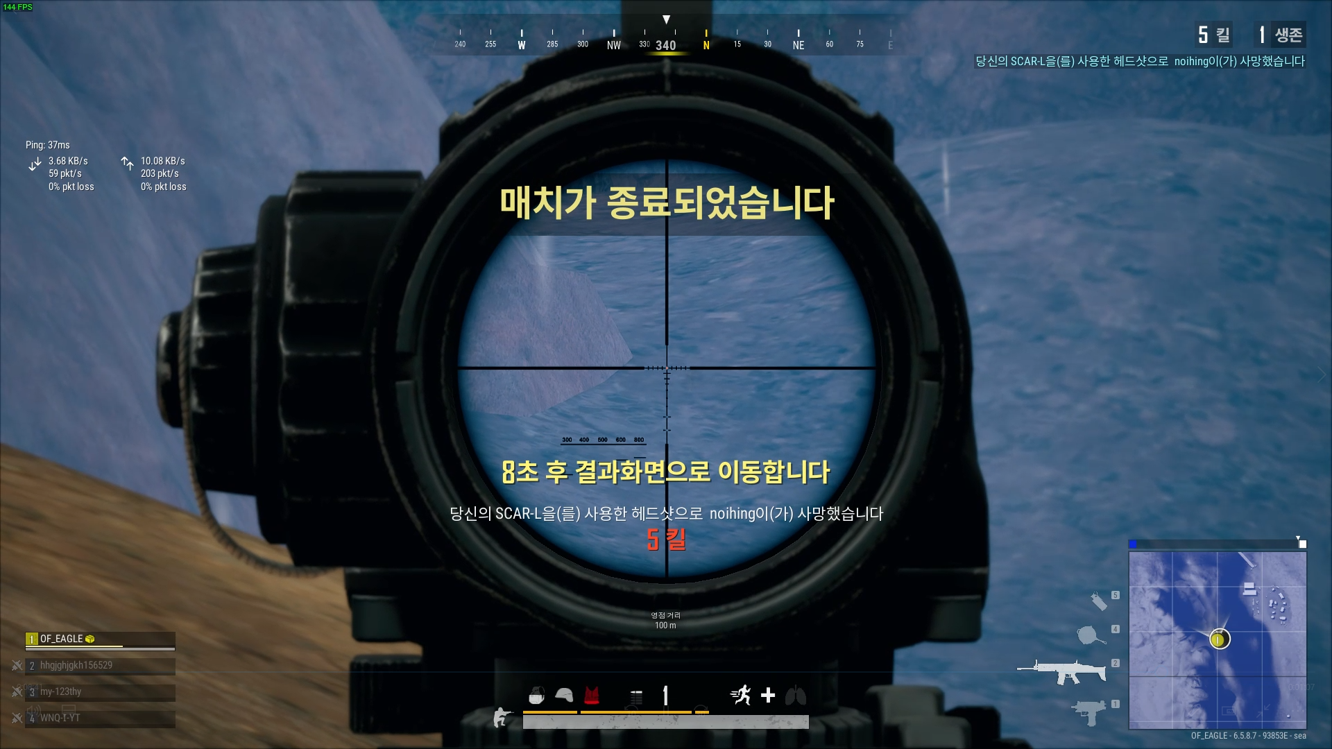 오잉 갑자기 헤드샷 뜨며 죽음.