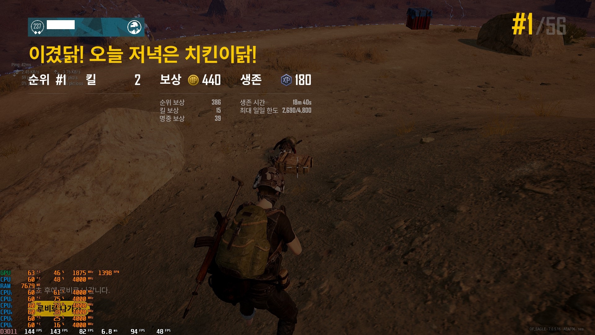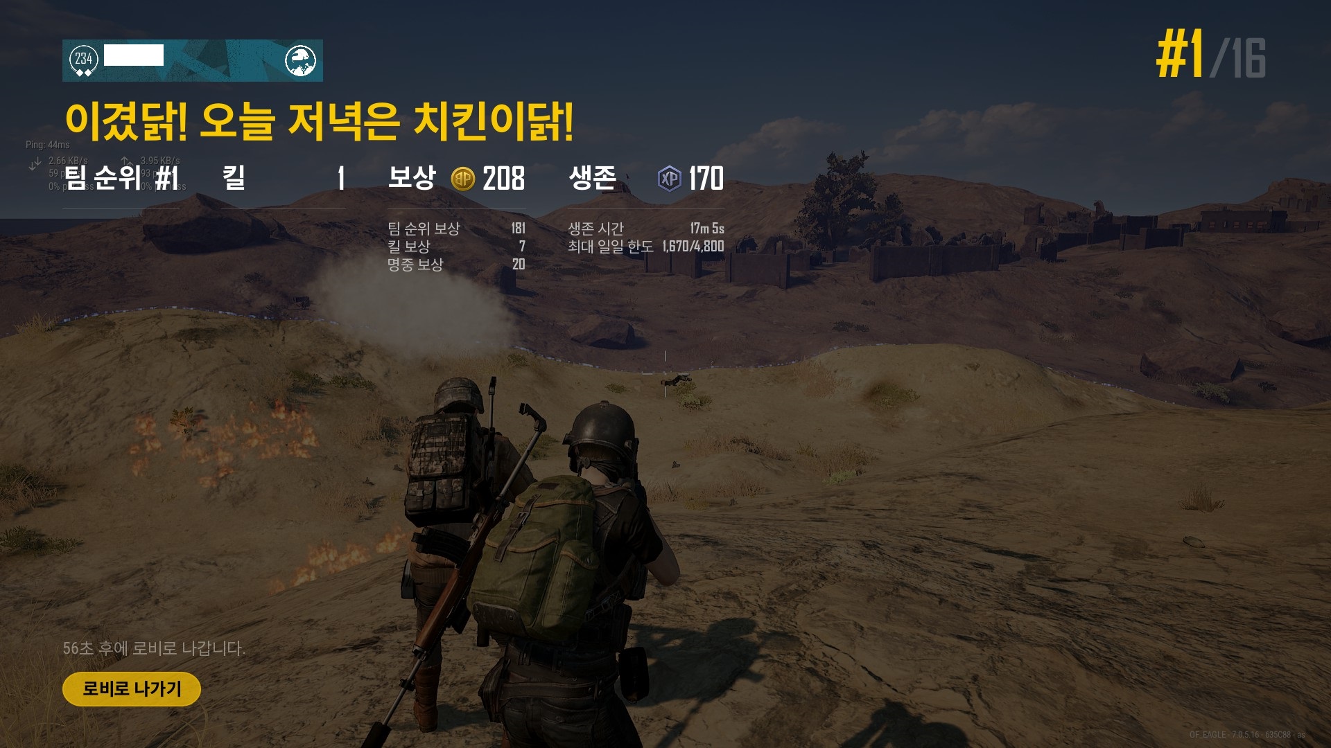 | 배틀그라운드 카라킨 듀오에서 블랙존 폭격으로 치킨 했다. (0) | 2020.01.29 |