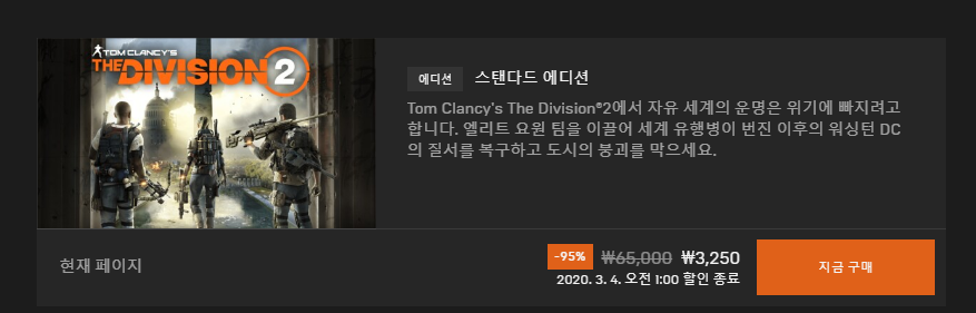 게임을 플레이어 줄어들면 할인하는데 디비전이 이정도 할인 할정도면 플레이어가 없나 봅니다.