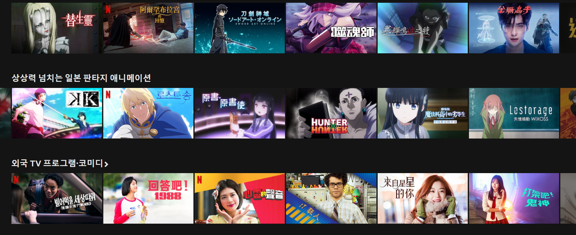 넥플릭스는 국가에 따라 공개되는 영화, 애니, 드라마가 다르다.