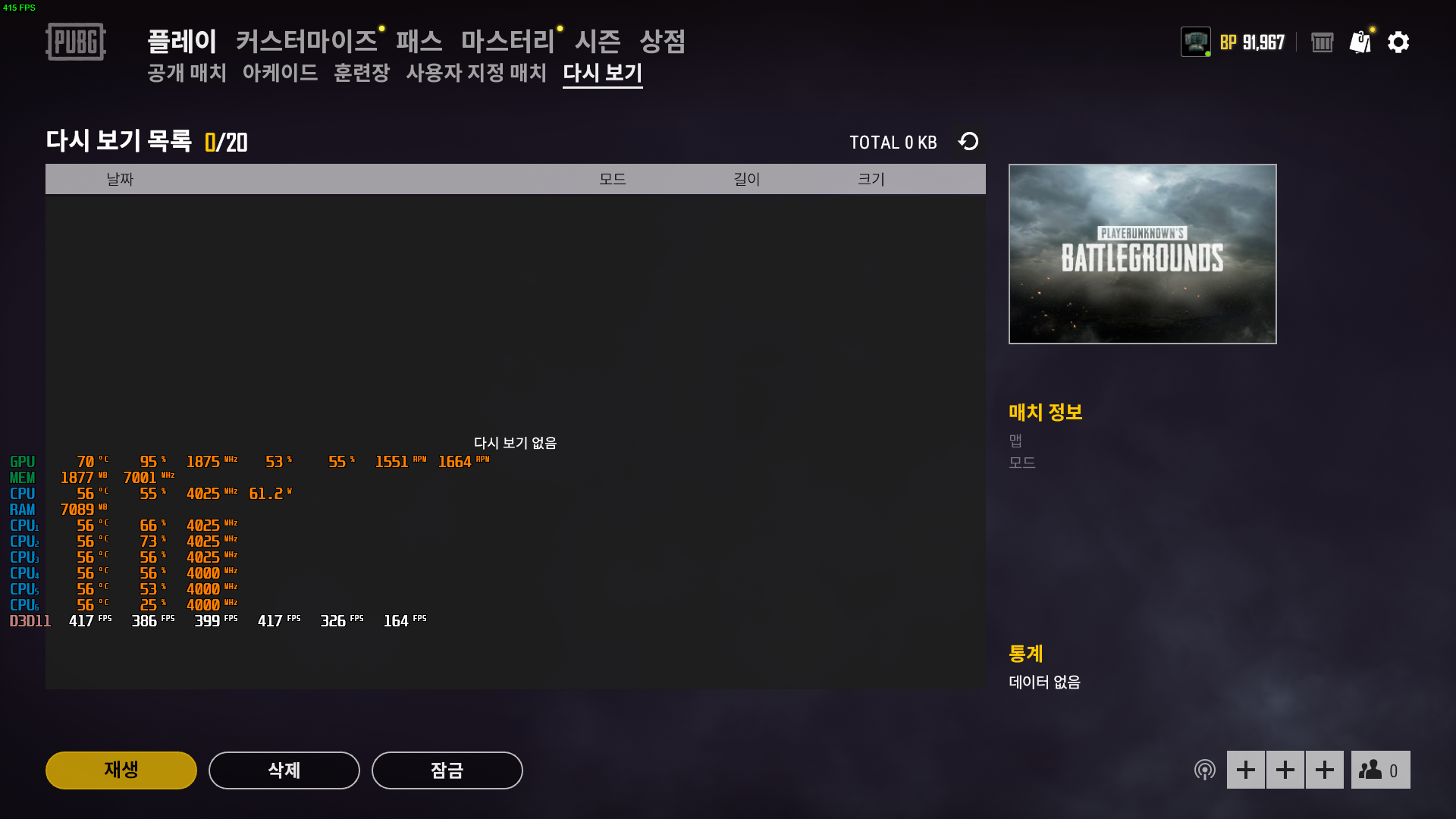이렇게 설정하고 게임을 실행하면 자동으로 화면에 fps와 cpu 사용량 온도 그래픽 사용량 온도 등이 표시된다.