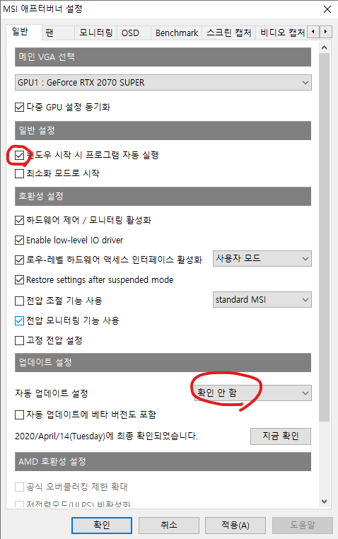 자동 업데이트 설정은 확인 안함으로 해야 나중에 부팅시 마다 귀찮은 에러 메시지가 안뜬다.