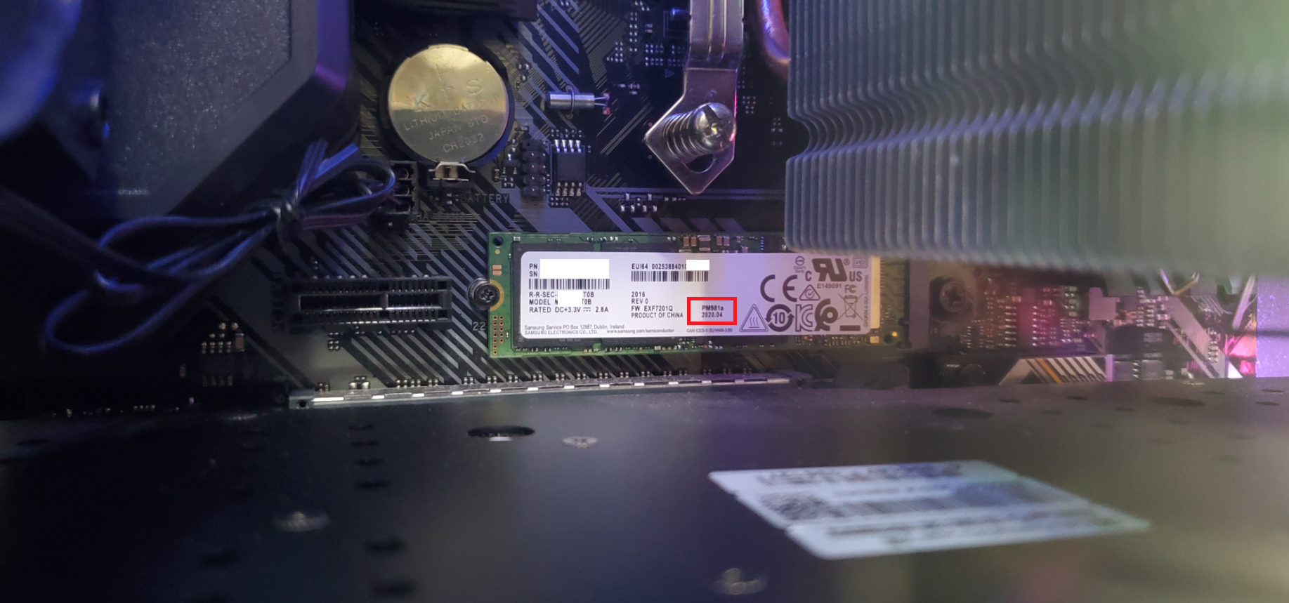2006년 출시된 모델이고 REV 0 는 리비전(설계 변경) 이 지금 까지 없다는 것 그리고 빨간 상장에 PM981A 라고 써져있고 제조일은 2020년 4월이다.