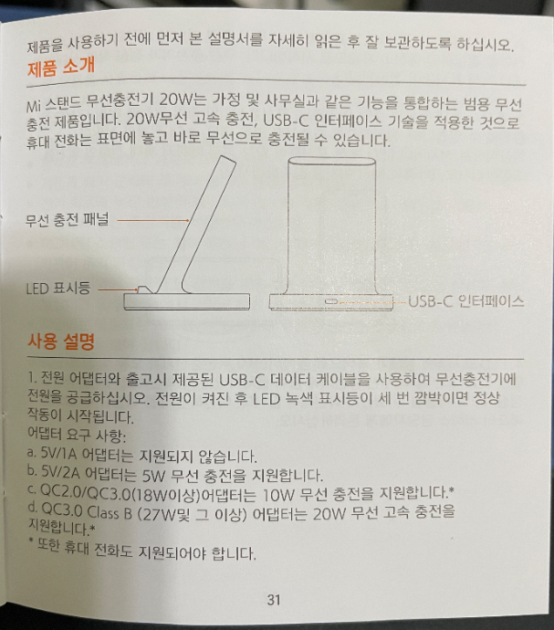 USB-C 타잎이라도 5V 1A 입력은 무선충전기가 작동도 안한다고 한다.