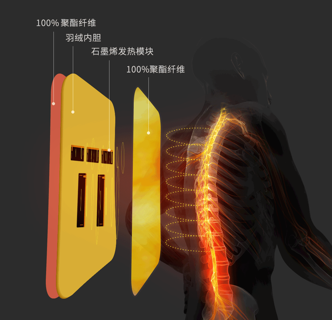 발열체는 등판에 5개 설치되어있다. 위 사진의 노란 부분이 발열하는 것이 아니라 검은 부분이 발열체다.