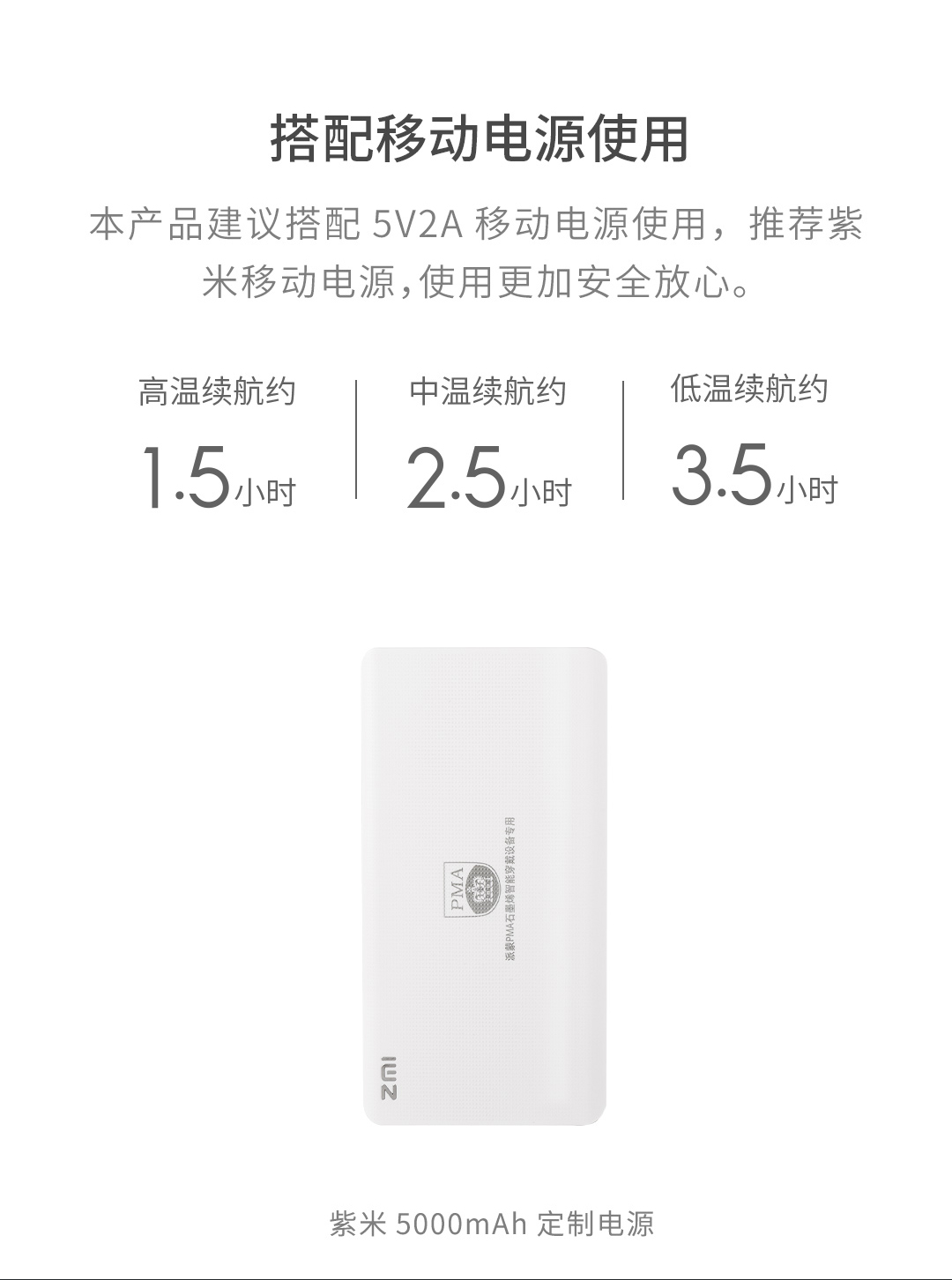 USB 5000 보조배터리로도 상당히 오래 사용가능하다. 저온으로 설정히 8시간은 사용할 수 있는 것 같다.
