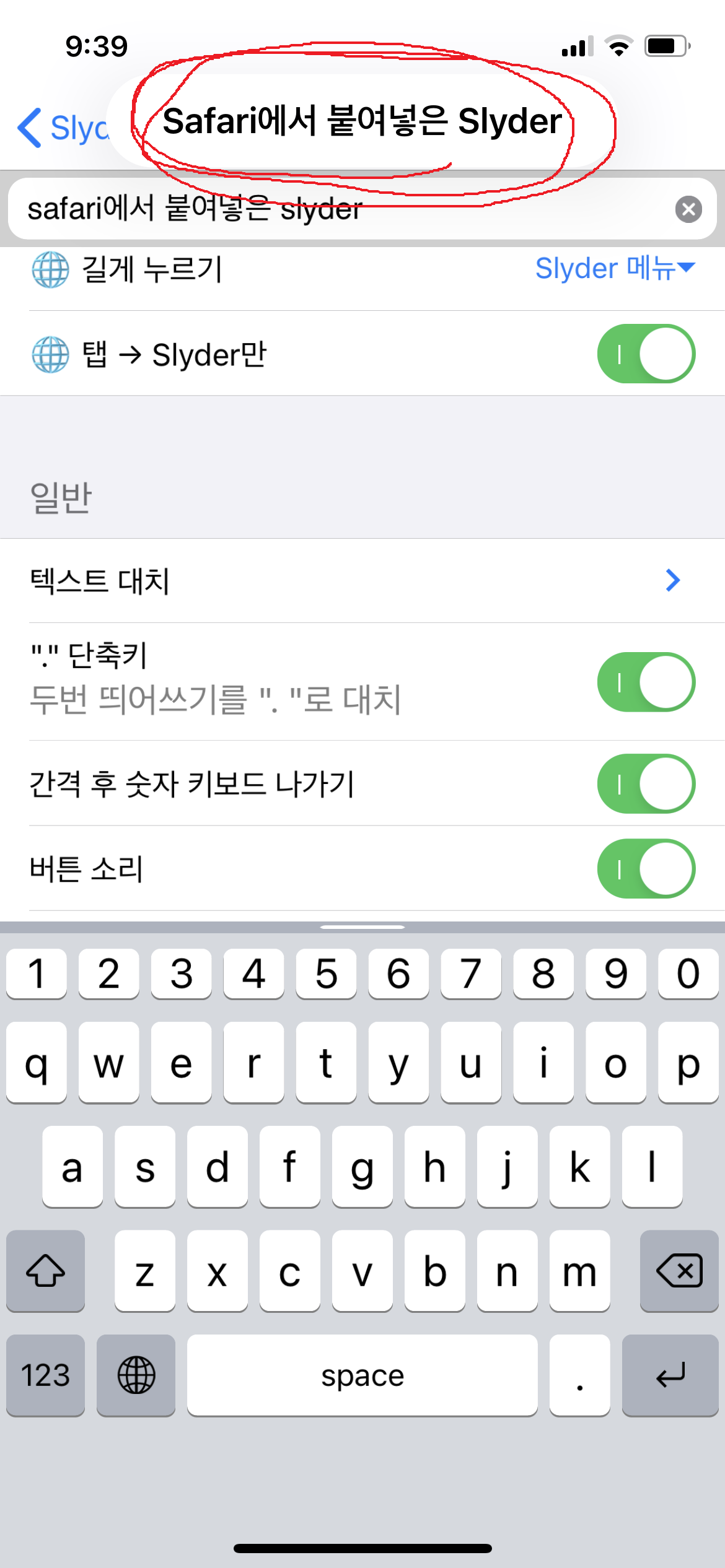 아이폰 12 프로 한영키 위치가 불편하다면 위 Slyder 무료앱을 추천한다.