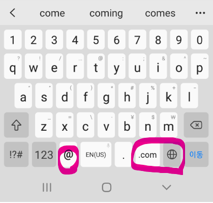 위 키보드는 웹브라우저 주소 입력시 나오는 키보드다.