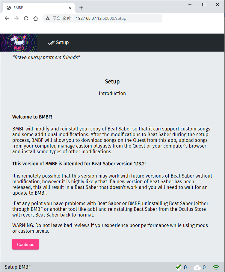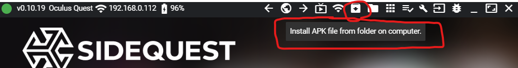 웹브라우저에 http://192.168.0.xxx:50000을 입력해서 pc에서 설치를 마무리하면 된다. sidequest 상단에 ip 주소가 나와있으니 그 주소를 이용하면 된다.