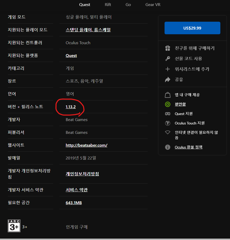 지금 오큘러스 공식 홈페이지에 배포되고 있는 버전과 동일한 버전이다.
