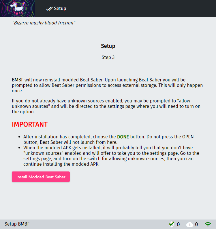 비트세이버가 설치 되어 있지 않다면 설치부터 하고 오라는 메시지가 나오고 설치 되어있다면 이렇게 지운다는 메시지가 나온다.