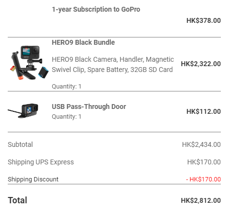고프로 히어로 9 블랙 번들킷이 공식 홈페이지에서 2,700 HKD