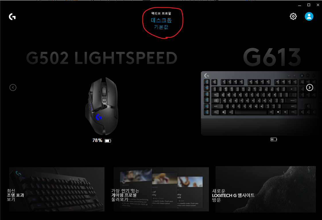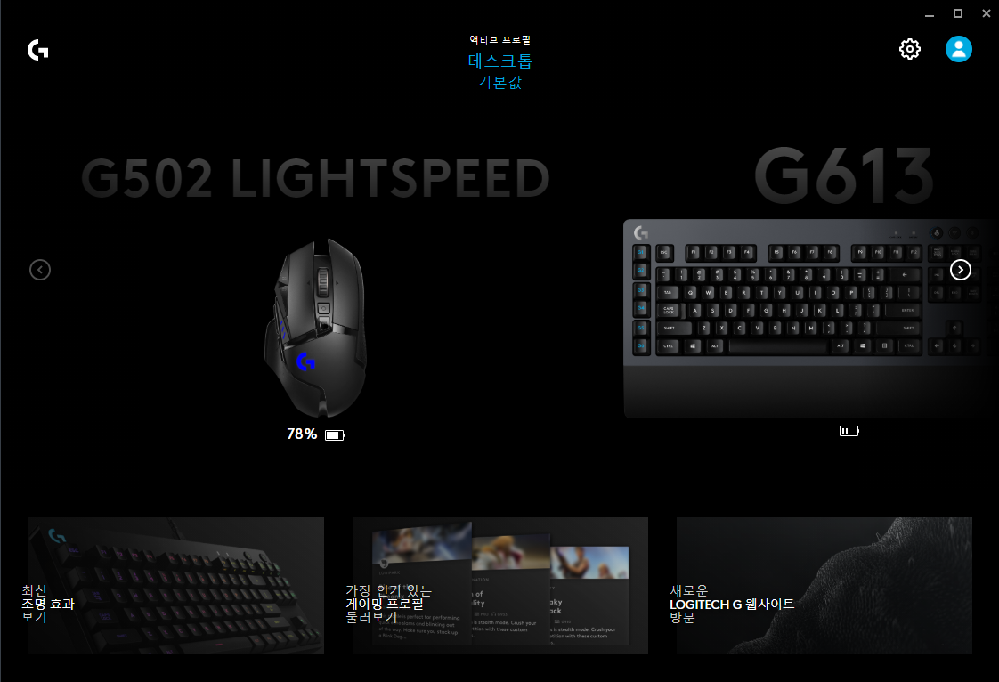 4. G HUB를 다시 실행시켜 보면 완전히 복구 된 것을 볼 수 있다.