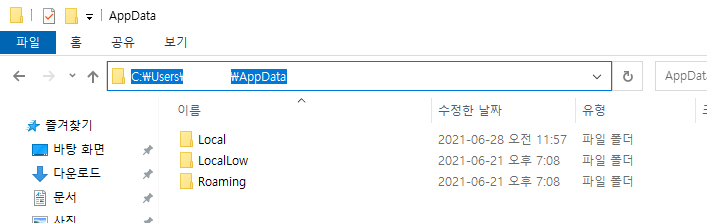 위의 경로가 탐색기에 열린다.