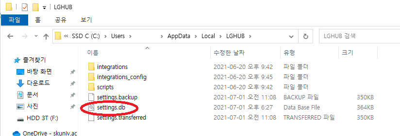 1. \AppData\Local\LGHUB 에 있는 settings.db 파일을 백업해둔다.