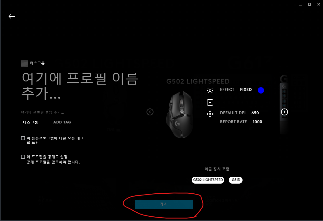 로지텍 마우스 프로그램 LG HUB 는 설정을 온라인으로 백업할 수 있다.