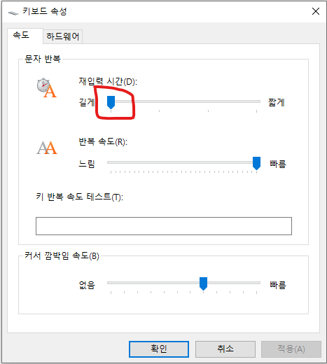 여기서 재입력 시간을 길게하면 키보드 문제로 인해 발생하는 반복 입력을 어느정도 줄일수 있다.