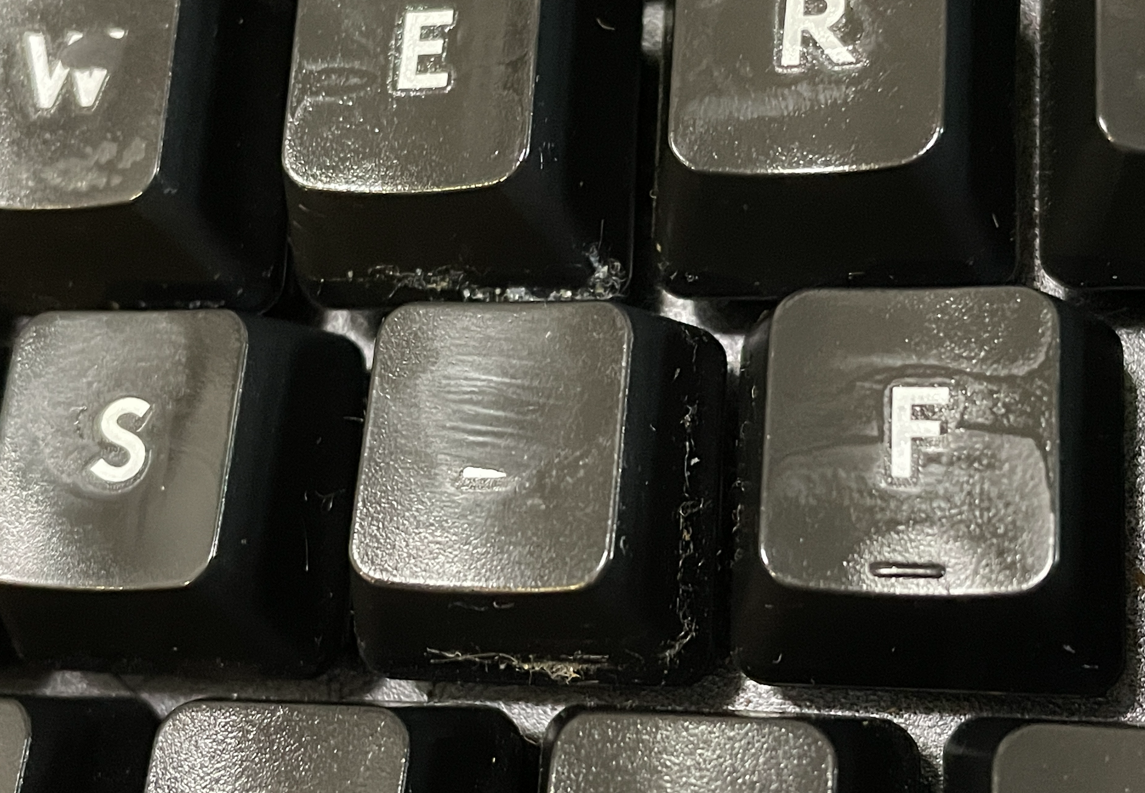 얼마나 게임을 열심히 했던지 D 키의 키스킨이 남아 있지 않다. 쉬프트역시 구멍이 났다.
