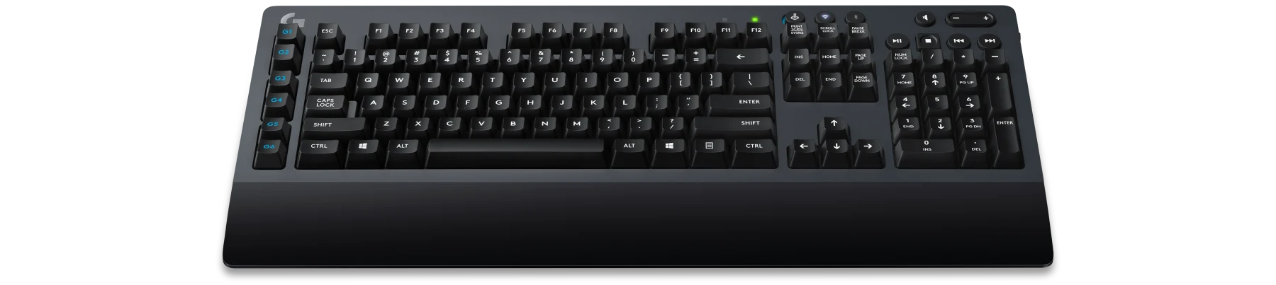 로지텍 G613은 AA 배터리2개를 사용하지만 1년 가까이 사용할 수 있고 유선은 지원하지 않지만 블루투스와 로지텍 LIGHTSPEED 2가지 무선 방식을 지원한다.