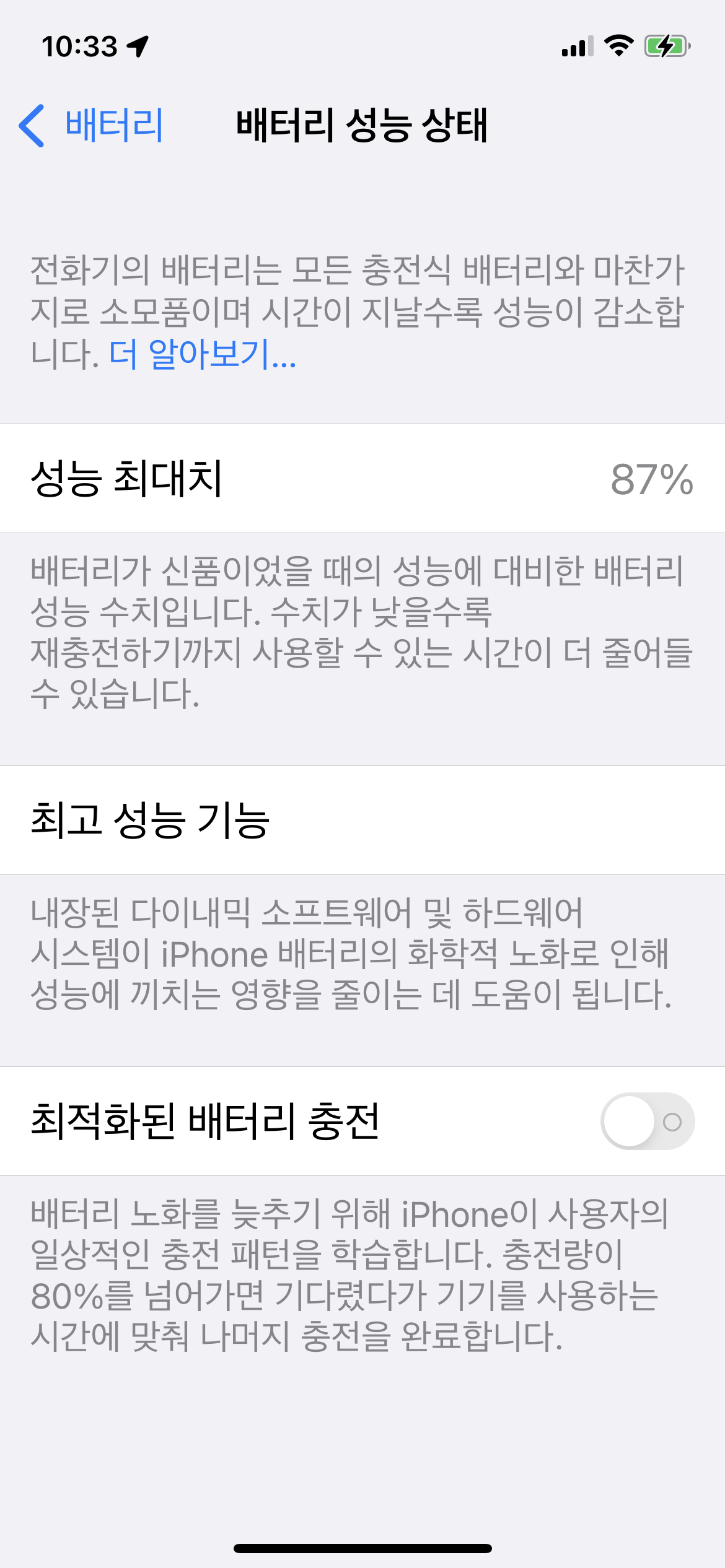 87%였던 배터리가 100%다. 처음엔 초기화 문제인 줄 알았는데 복구 시켜도 100%다.