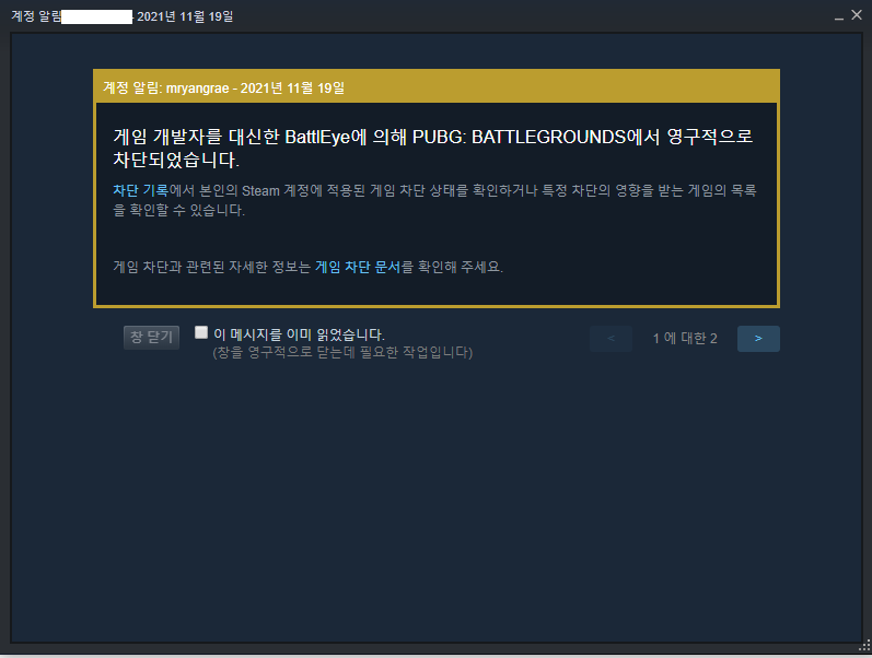 | 배틀그라운드 무고밴 후기 (1) | 2021.11.20 |